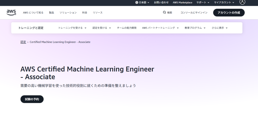 | AWS Certified Machine Learning – Engineer Associate | AWS | 約20,000円(150 USD) | 非公開 | 80〜150時間 |