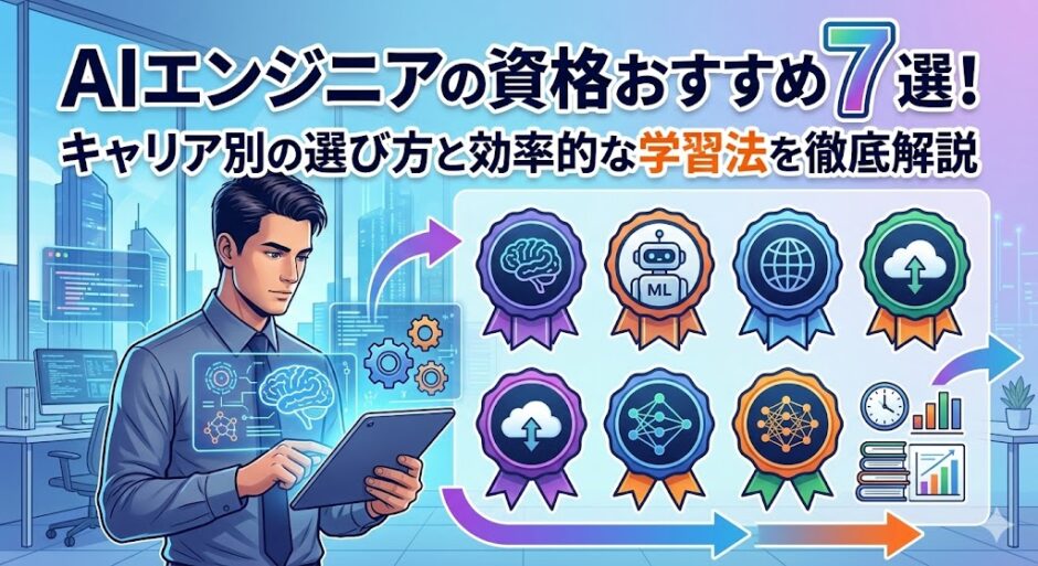AIエンジニアを目指す中で「資格を取るべきか、それとも実務経験を優先すべきか」と悩む方は多いのではないでしょうか。AI関連の資格は国内外で数多く提供されており、難易度や費用、対象レベルもさまざまです。自分のキャリアに本当に役立つ一つを選ぶのは、想像以上に難しいものです。本記事では、AIエンジニアにおすすめの資格7選を難易度・費用の比較表付きで紹介し、キャリア目標別の選び方から効率的な学習法、さらに生成AI時代における市場動向と求められるスキルの変化まで網羅的に解説します。これからAI分野でキャリアを築きたい方はぜひ最後までお読みください。
