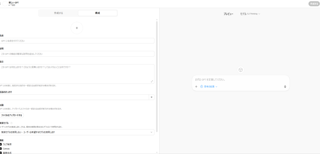 GPTsの作成・カスタマイズができる