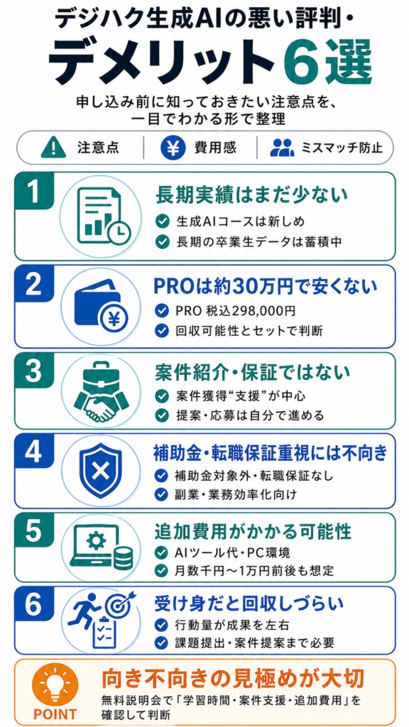 デジハク生成AIの悪い評判・デメリット6選