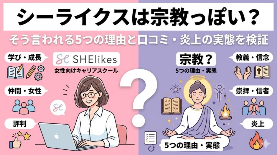 この傾向はシーライクスに限った話ではなく、オンラインスクール業界全般に共通する課題です。広告の露出頻度が高いサービスほど「怪しい」という検索需要が生まれやすいという相関が指摘されており、シーライクスの場合もこの構造の中で「宗教」というワードと結びついたと考えられます。